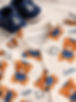 O body de manga longa possui botões de pressão entre as perninhas, facilitando a troca, enquanto a calça tem elástico confortável na cintura e punhos que ajudam a manter a peça no lugar.
